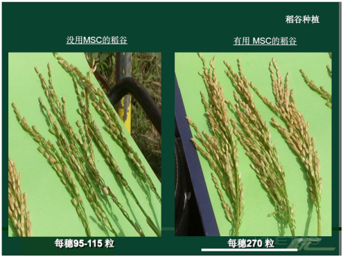 Unten links: ohne SEA ENERGE; 95 - 115 Körnen pro Ähre // Unten rechts: mit SEA ENERGE; ca. 270 Körnen pro Ähre